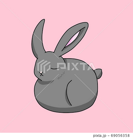 目を閉じている灰色のウサギ ピンク背景 のイラスト素材